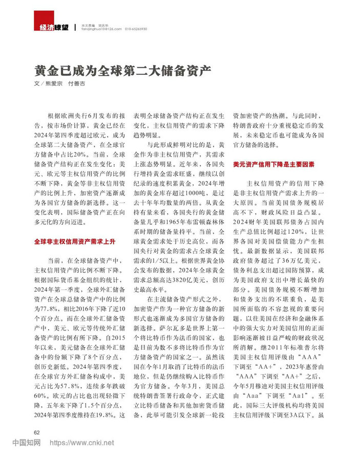 根据欧洲央行6月发布的报告,按市场价计算,黄金已经在2024年第四季度超过欧元,成为全球第二大储备资产,在全球官方储备中占比20%。当前,全球储备资产结构正在发生变化:美元、欧元等主权信用资产的比例不断下降,黄金等非主权信用资产的比例上升,加密资产逐渐成为各国官方储备的新选择。