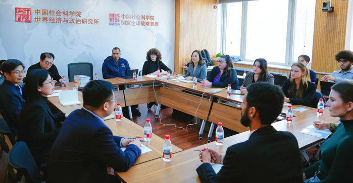 2026年3月17日,美国蒙特雷国际研究学院(Middlebury Institute of International Studies at Monterey, MIIS)梁微老师率MIIS学生代表团一行12人访问中国社会科学院世界经济与政治研究所。世经政所所长廖凡研究员对代表团来访表示欢迎,《中国与世界经济》编辑部主任宋锦研究员、国际贸易研究室主任苏庆义研究员、外交政策研究室主任肖河研究员、中国社会科学院大学全球与区域国别学院执行院长王华教授、学院党政办公室李阳主任参与会见。双方就中美日政治和经贸关系的新进展进行了深入交流。